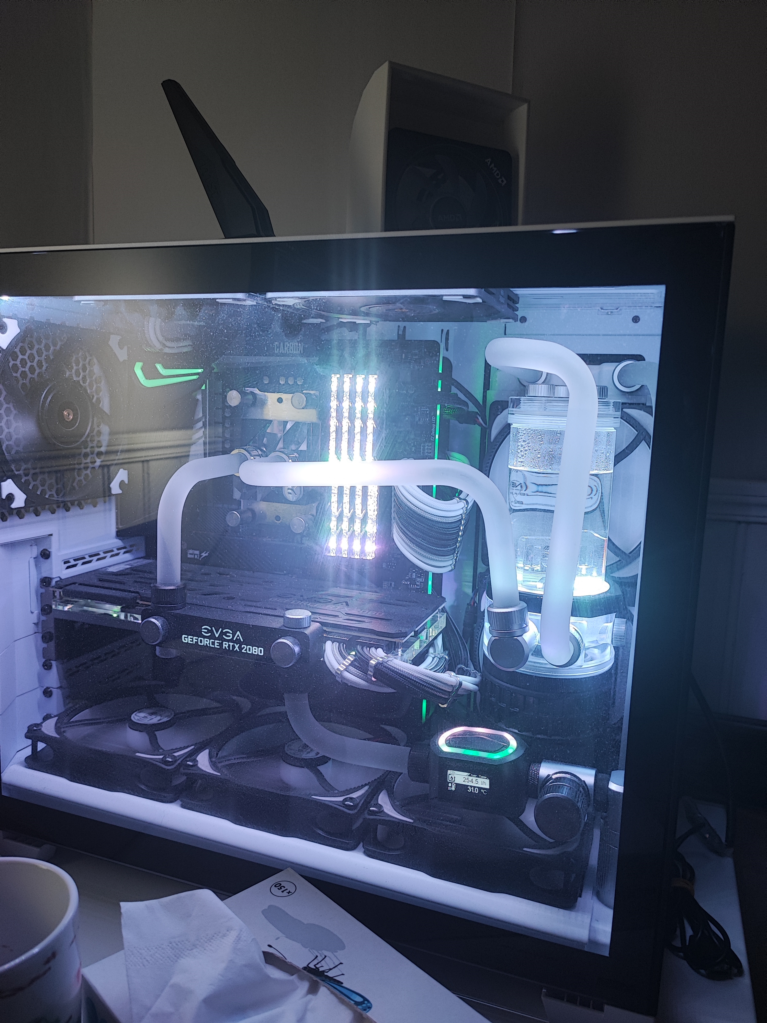 Ryzen 5800X + EKWB Supremacy edge Limited editionMSI X570 Gaming pro carbon WifiCâble d'alimentation custom Cablemods.4x8Go G.Skill Trident Z RGB 3200C14 SSD 1To WD SN750SSD 1To Crucial P5EVGA RTX2080 XC2 + Hydro CopperCorsair SF750 PlatinumEKWB Kinetic TBE 200 D5 PWM D-RGBBlackIce Nemesis GTS360+240Aquacomputer HighflowNEXTEKWB Torque HDC-14Tube OD14 Bykski satinNF-A12x15 PWM Chromax Black x3Noiseblocker Eloop B12 x5Lian-Li O11D Mini BlancWin10 Pro