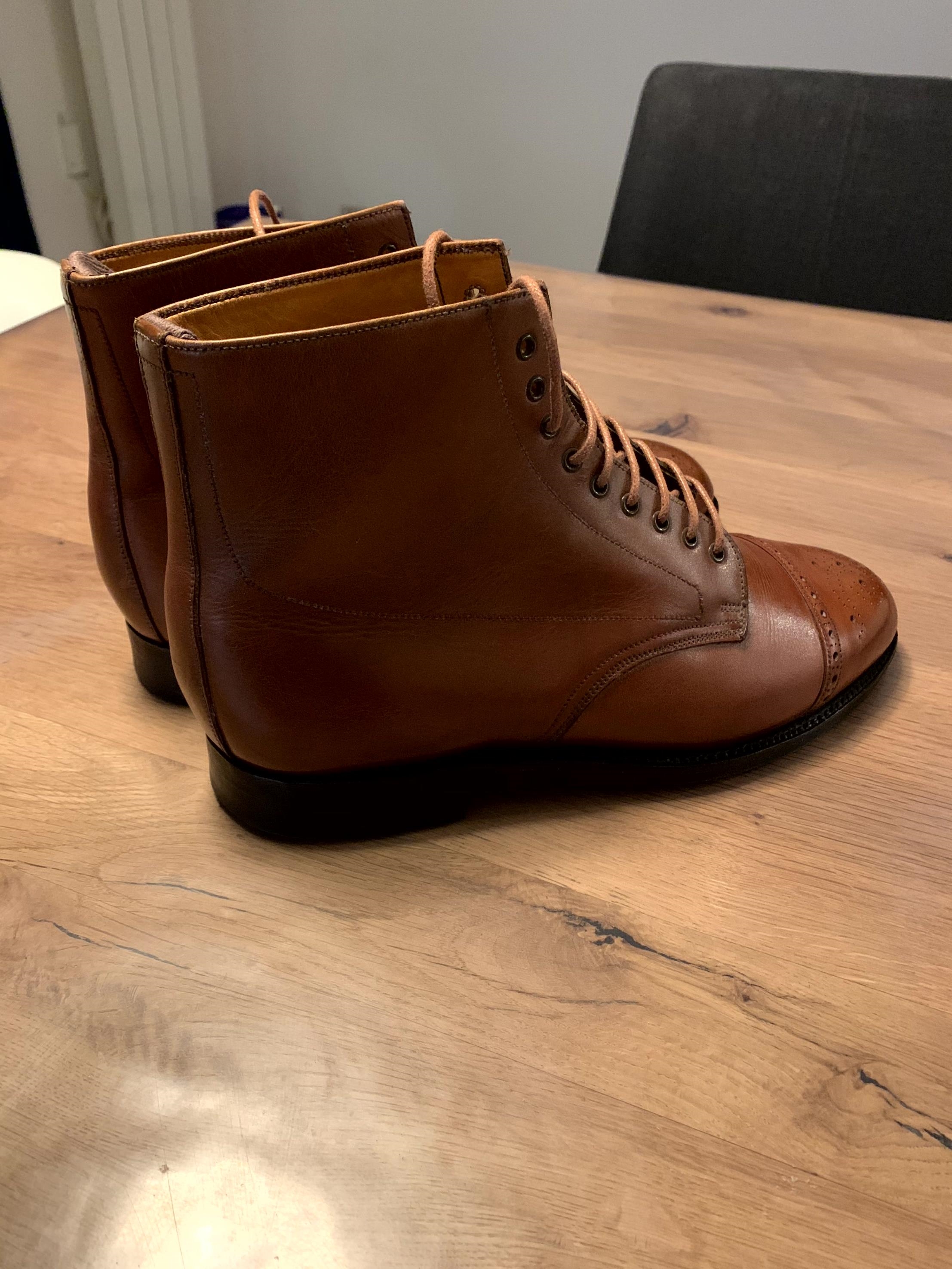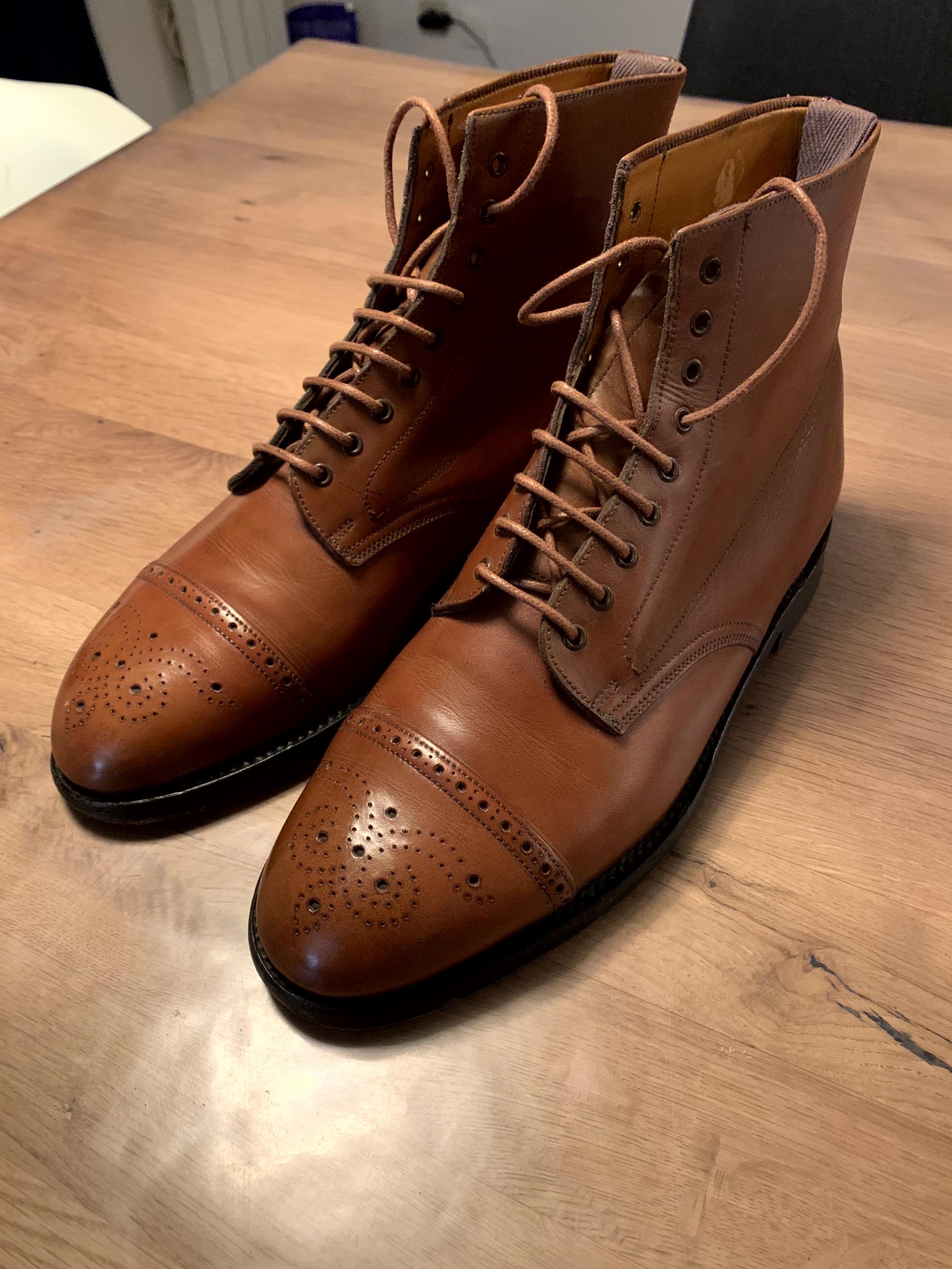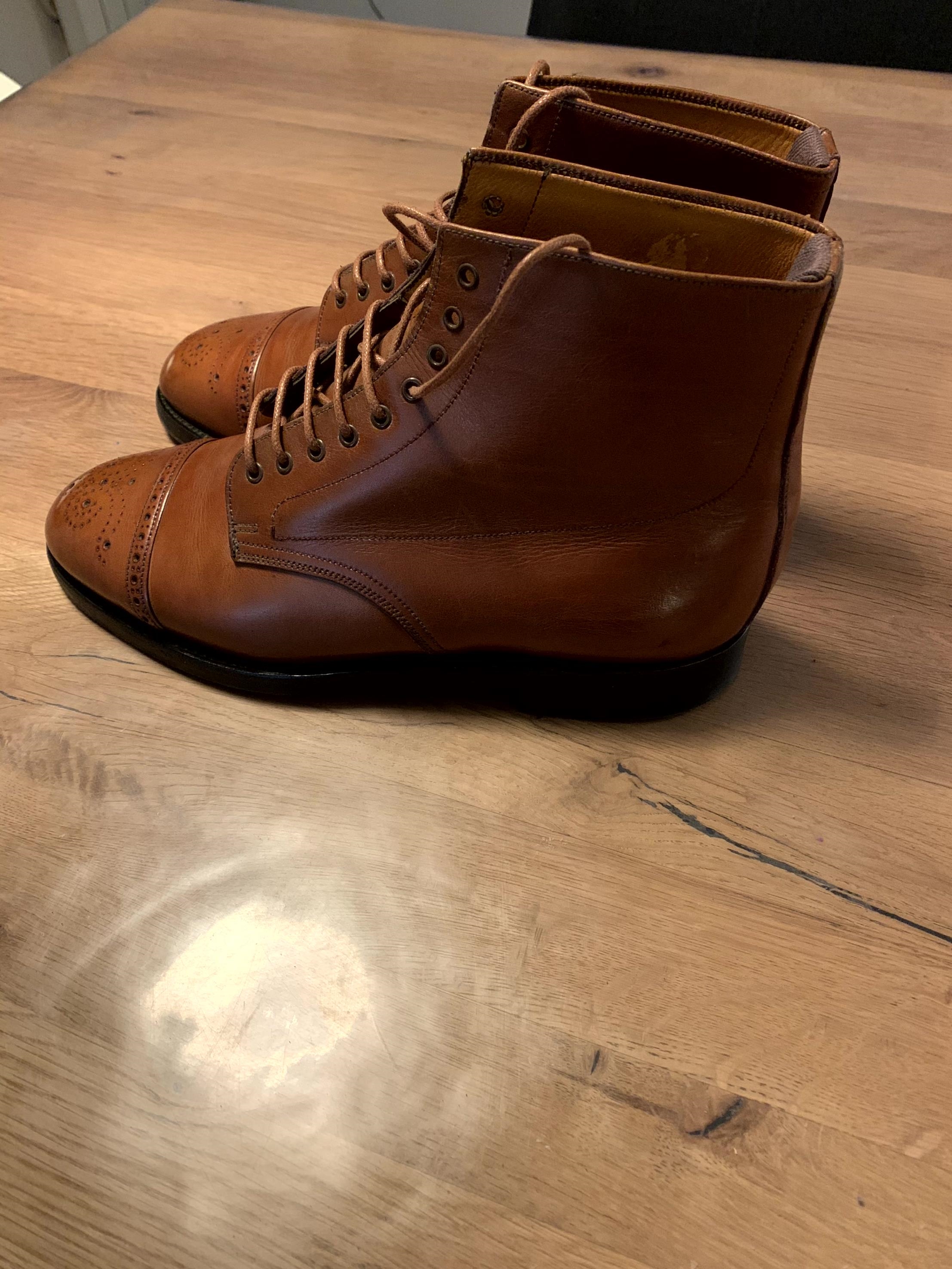 Bottines Bowen, surement fabriquées par Alfred Sargent. Cuir magnifique. Superbe état. Semelle cuir d'origine. Taille petit (pour taille habituelle en 7.5uk) 160€