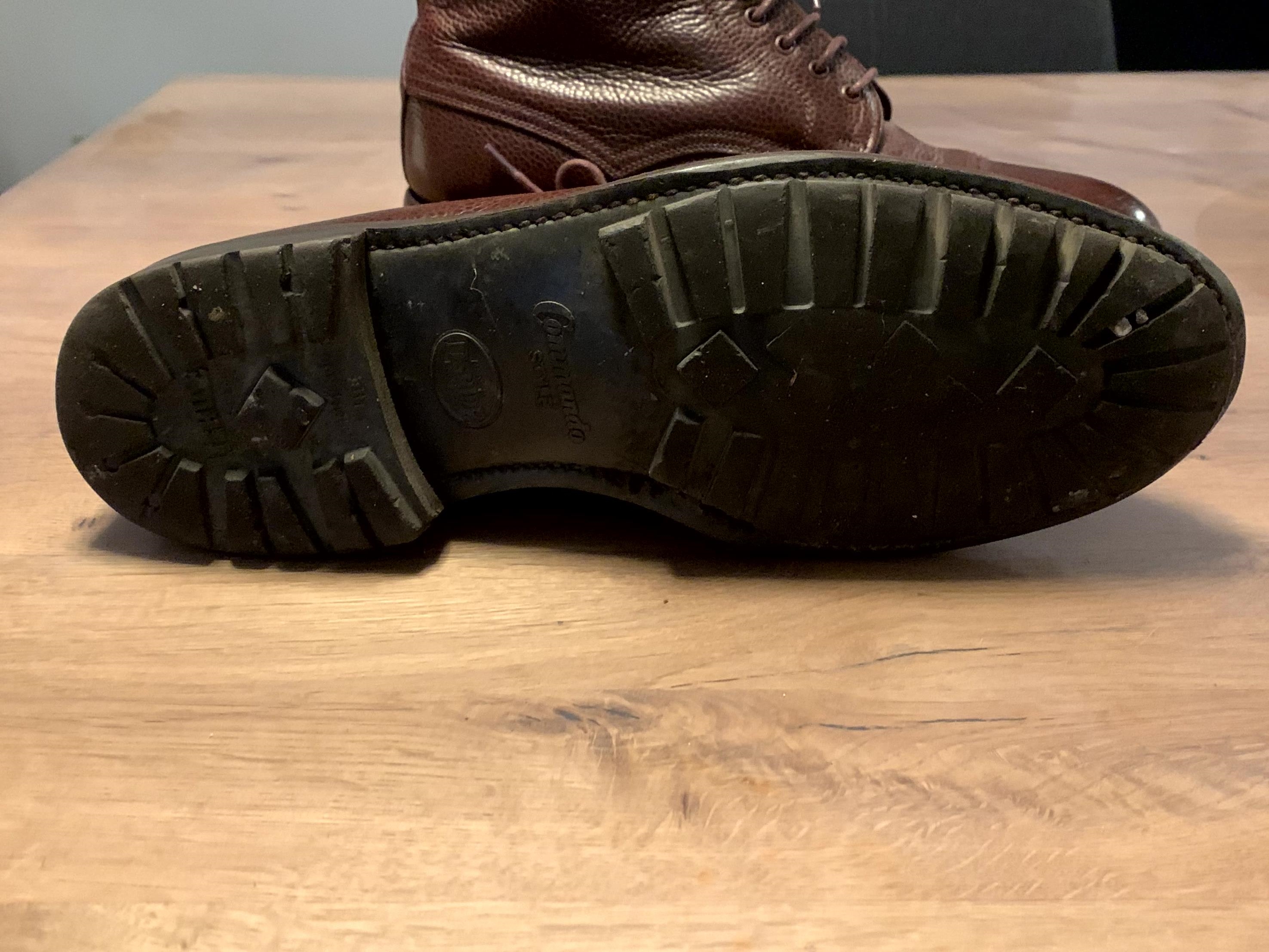 Semelles commando usées mais ca peut encore faire le taf. Des accros sur le bout dur du pied gauche.
