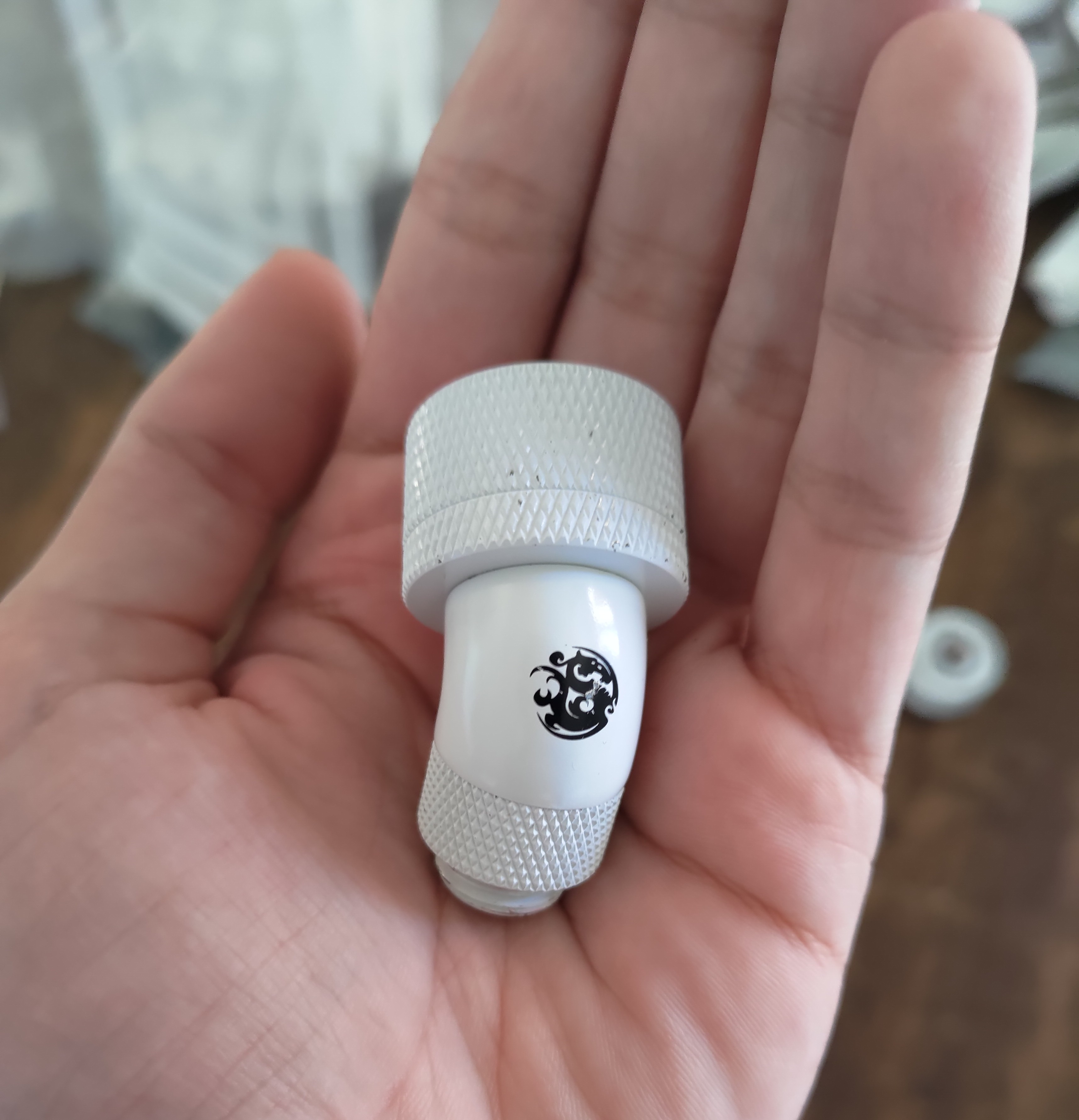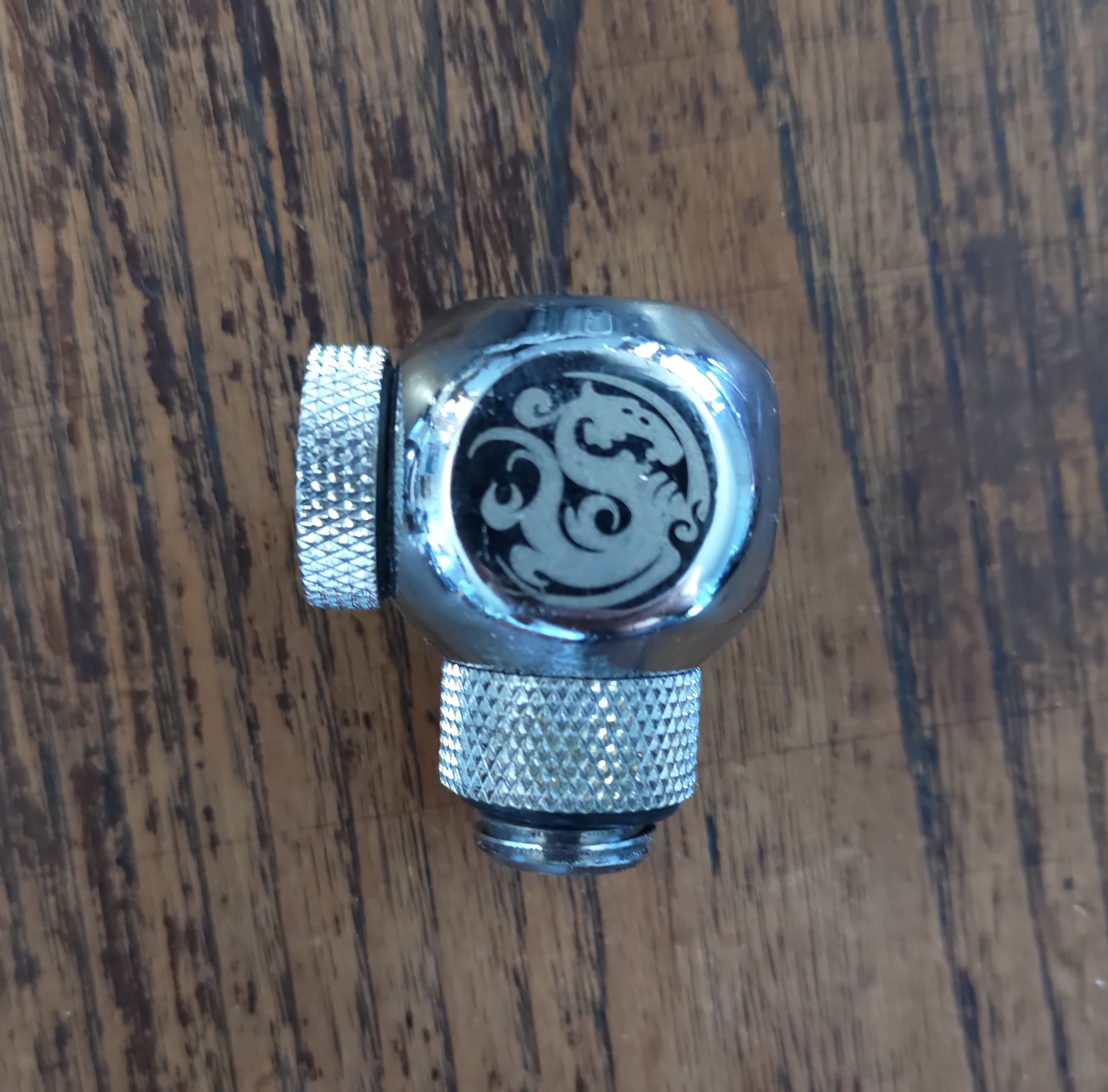 Un embout rotatif + connecteur passe cloison Bitspower shinning. 10€