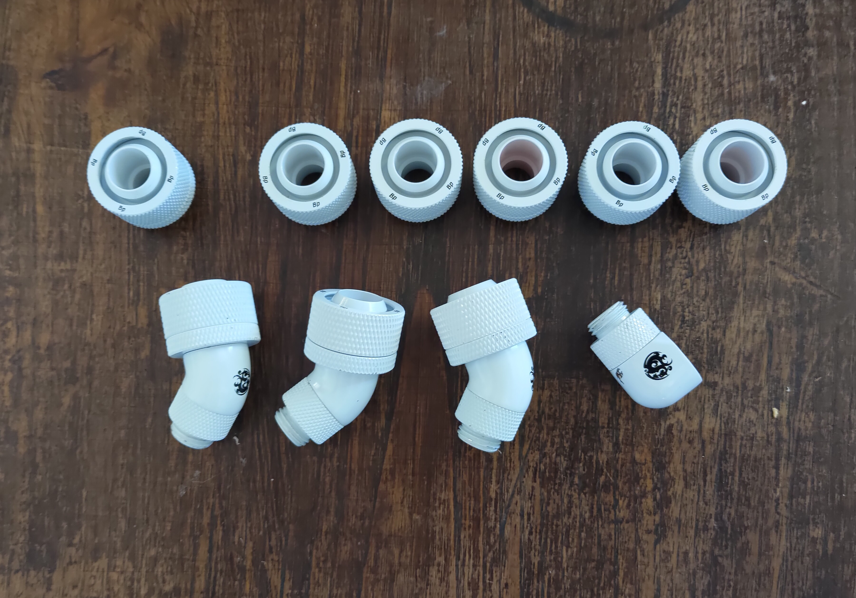 5 embouts rotatifs Bitspower shinning. 10€/u