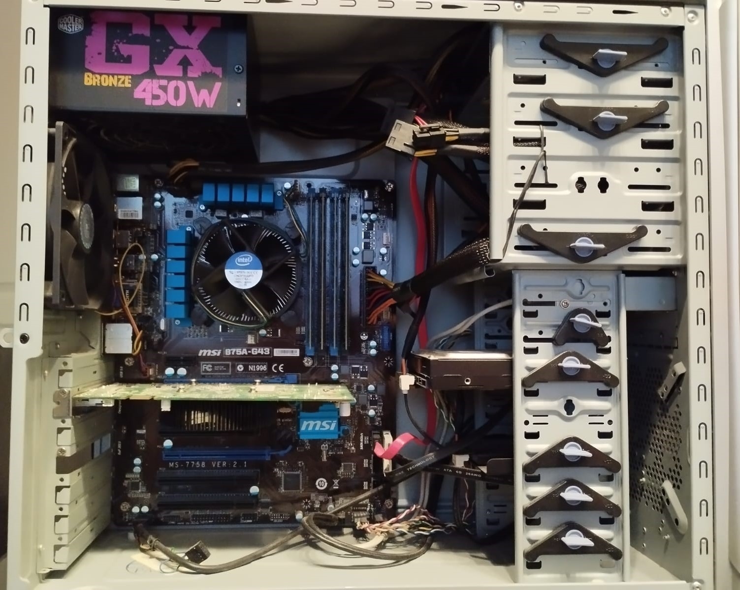 J'ai un PC de bureau complet à vendre : - Boîtier avec lecteur de cartes - Graveur DVD LG - Alimentation Cooler Master 450w - Carte mère MSI B75A-G43 - I5 3470 - 16 go de ram - 9600GT - SSD 128 Go - HDD 500Go 7200TPM - Windows 10 - Clavier Logitech G15 Refresh - Souris basique - Écran Hyundai L90D+
