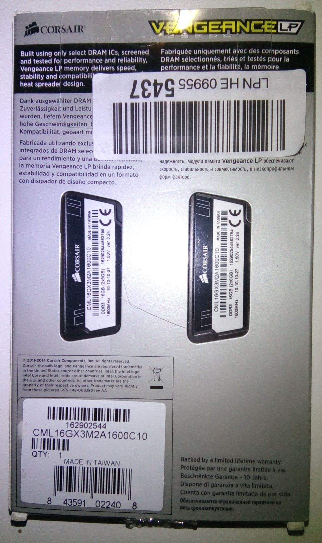 kit dual-channel dual-ranks low-profile 2*8GB DDR3 Corsair PC1600 "CML16GX3M2A1600C10" avec facture amazon.fr + boîte et garantie à vie : https://www.amazon.fr/dp/B007TG8QRW