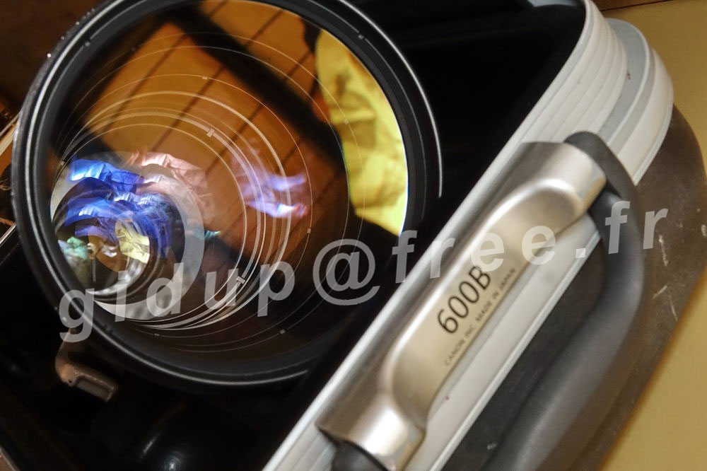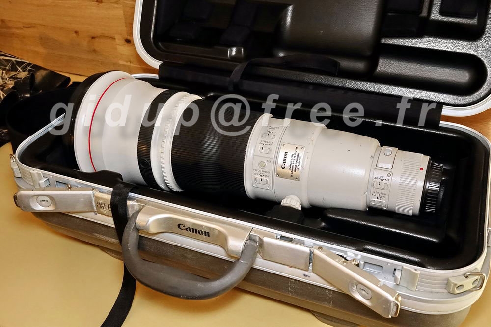 accessoires inclus : - Mallette (aspect usagé mais parfaitement fonctionnelle) et accessoires originaux (Pare-soleil rigide, sangle, support d'objectif et porte filtre avec filtre neutre interne) - Lenscoat 600mm EF ll