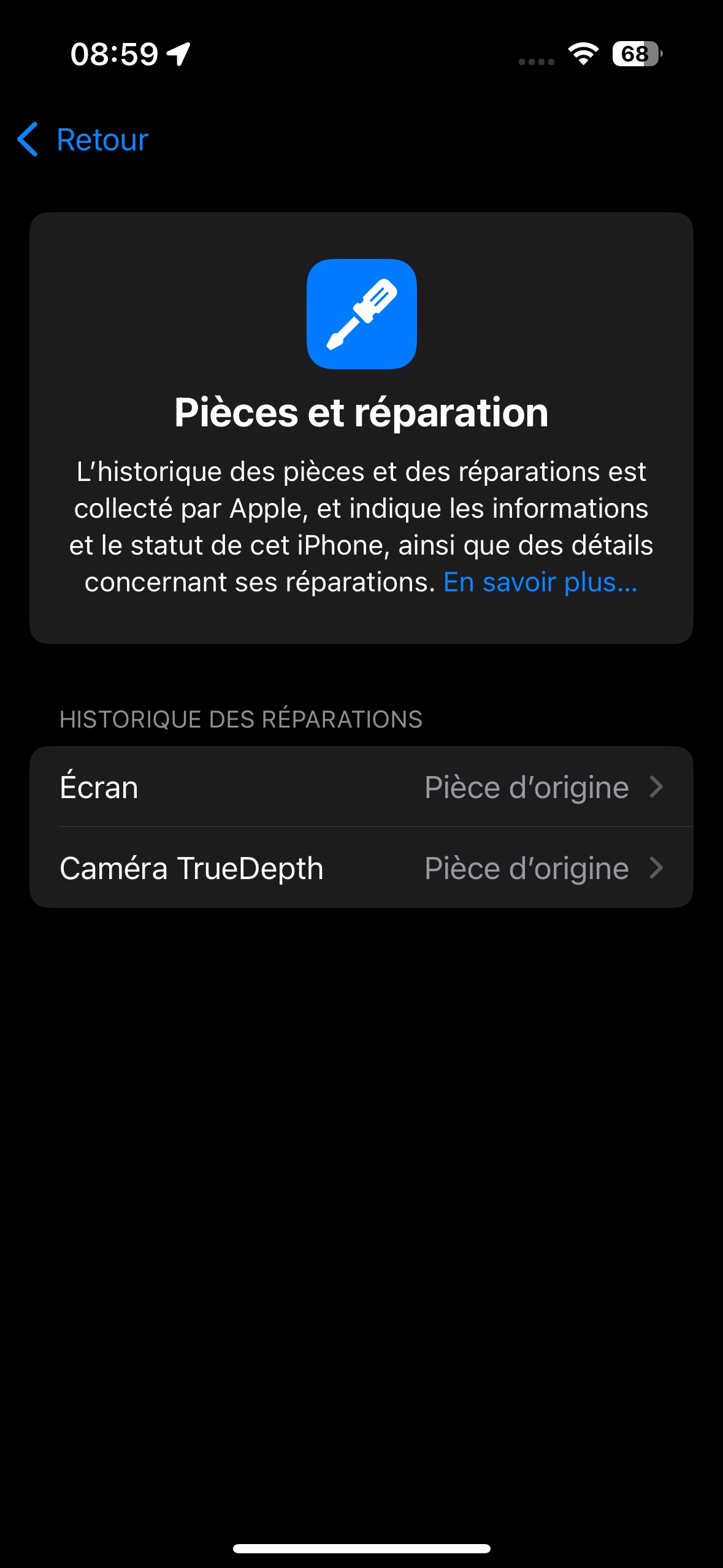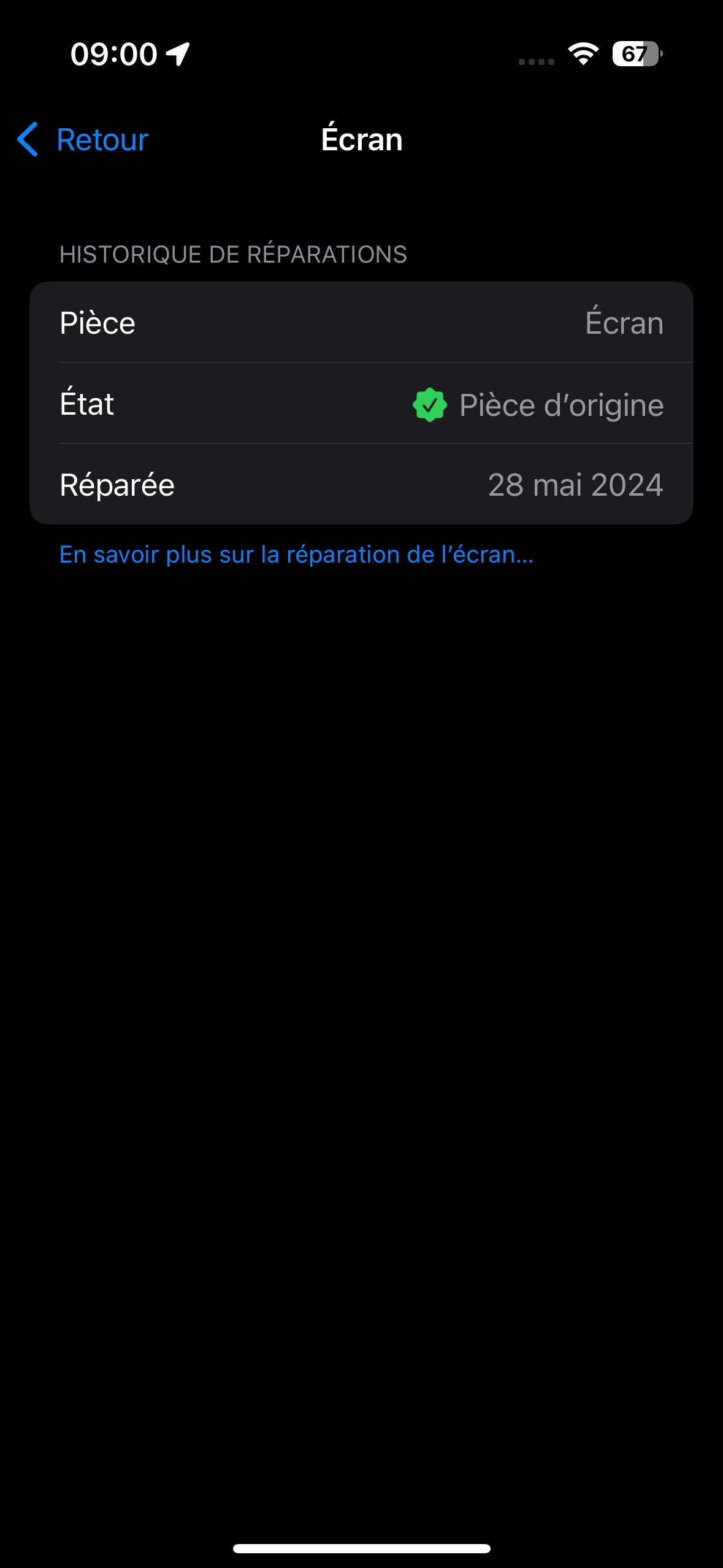 Facture réparations : dispo - Ecran changé chez Apple (665€)