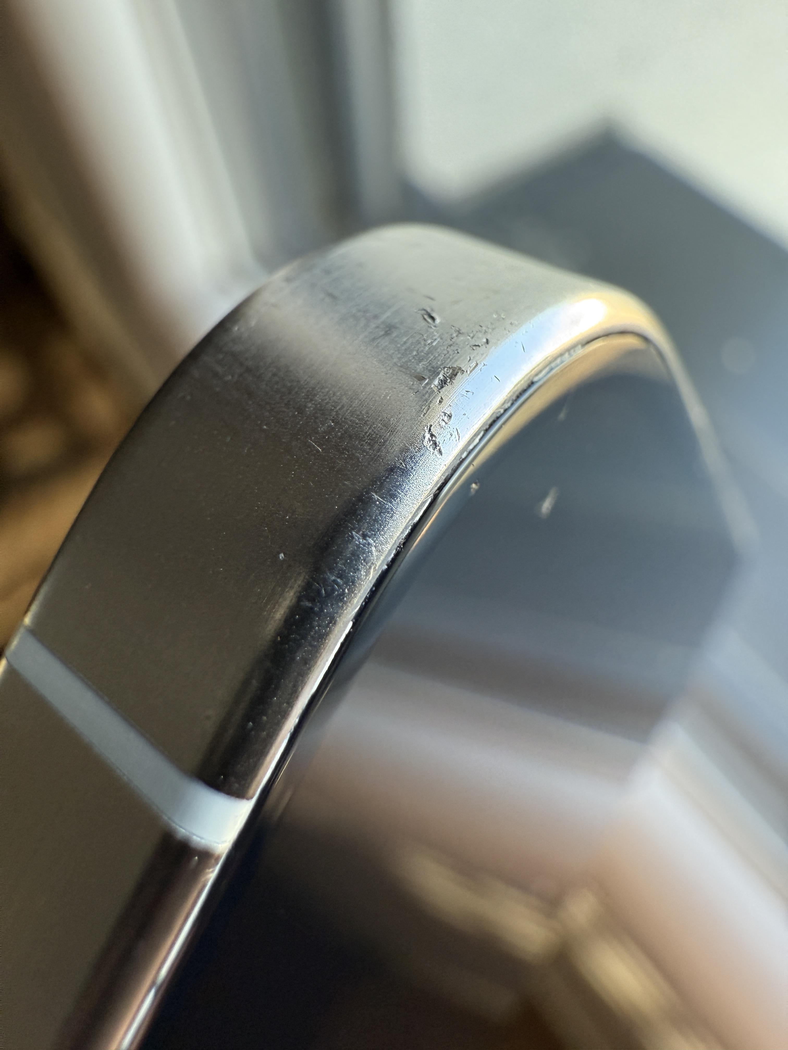Il est en très bon état, quelques micro-rayures d'utilisation sur le cadre en titane et une petite griffure (voir photo - merci le mode macro du 16 Pro, c'est pas si gros que ça en réalité