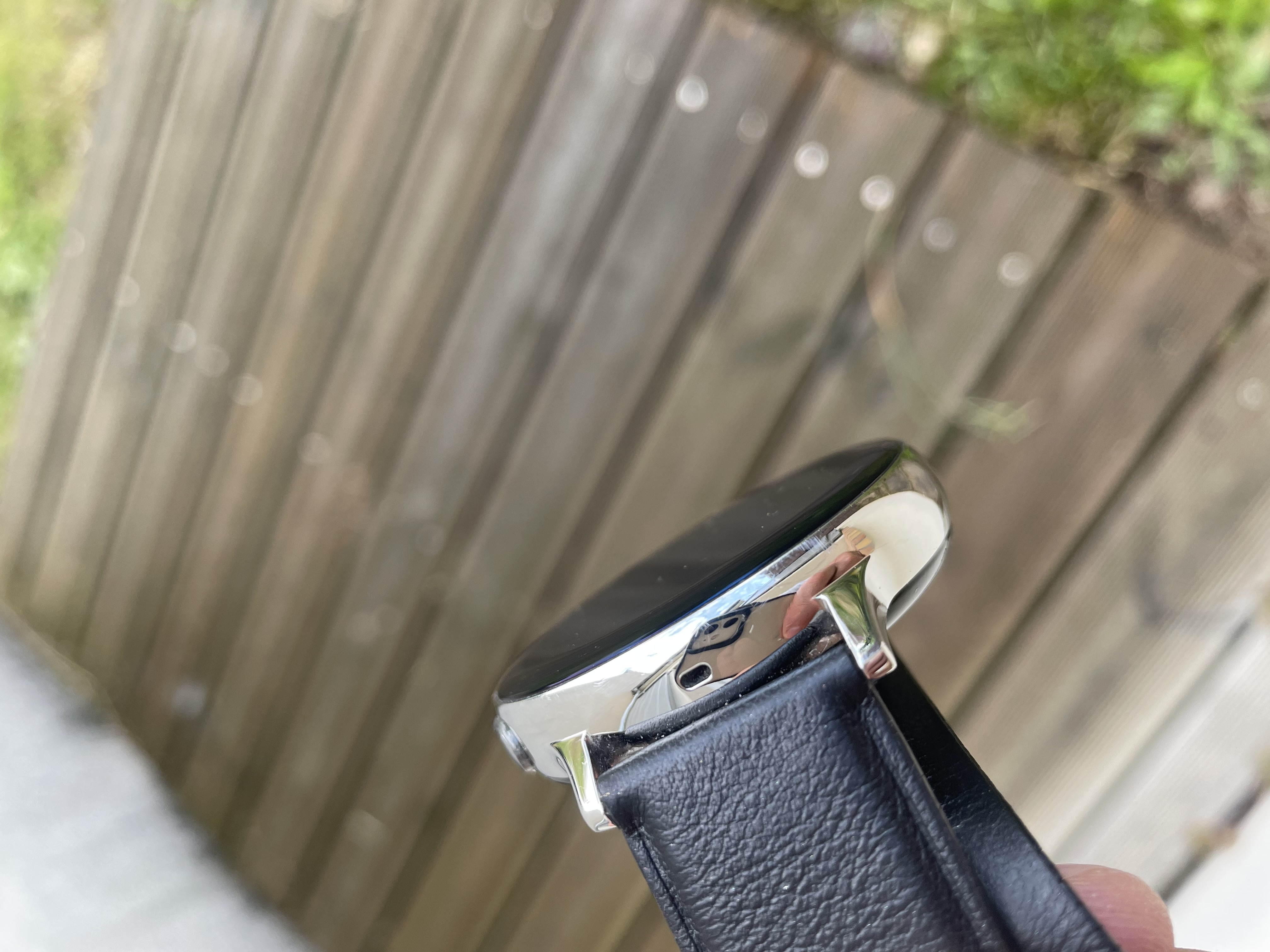 C'est une Galaxy Watch Active 2 Inox avec bracelet d'origine en cuir noir.