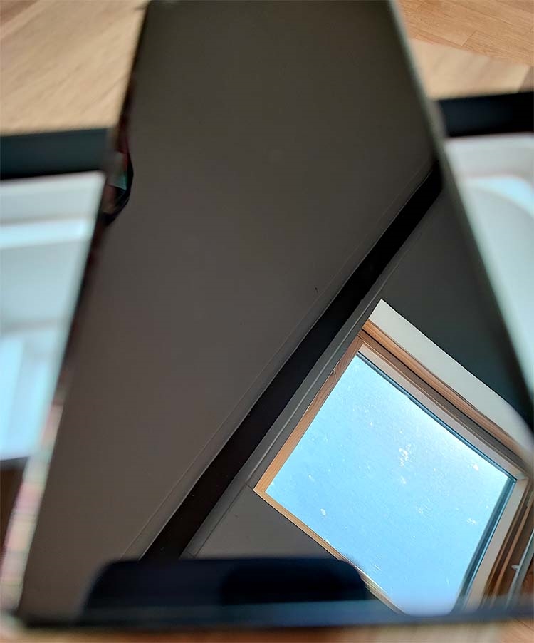 Pour le film de protection en faisant refléter directement le soleil (en se cramant les yeux au passage