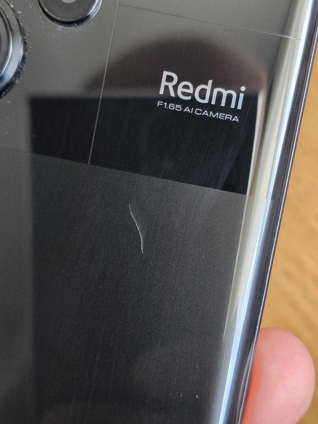 Il y a juste une rayure sur la coque arrière (voir photo), mais non lisible avec la coque fournie avec.