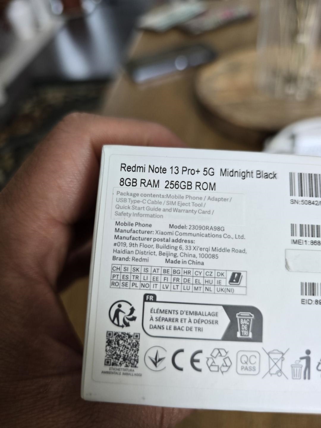 Xiaomi Redmi Note 13 Pro+ 5G noir (8 Go-256 Go, Désimlocké...).