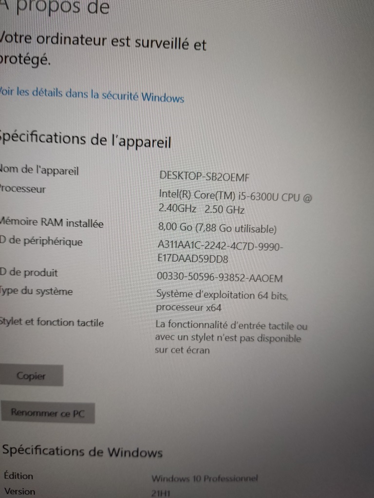 J'ai un T470 avec i5 6300U / 8Go upgradable / SSD 256 NVME intel / Ecran full HD / Clavier rétroéclairé / Windows 10 .