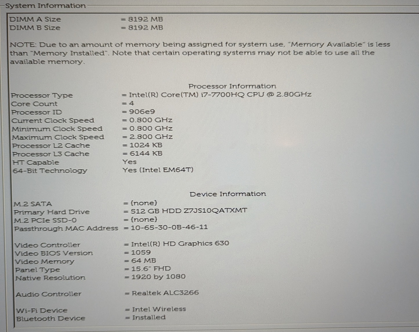 Quelques composants ont étés remplacés suite à une légère corrosion sur la carte mère, le port M.2 a été remplacé mais la fonction PCI-E/support NVME n'est pas opérationnelle (uniquement sata). La dalle d'origine était un mauvais TN 45% de gamut, j'ai remplacé la dalle par une dalle de Precision 7510 en IPS 72%, c'est beaucoup plus agréable. L'autonomie est bonne mais je doute que la batterie tiendra dans le temps puisqu'elle est légèrement bombée.