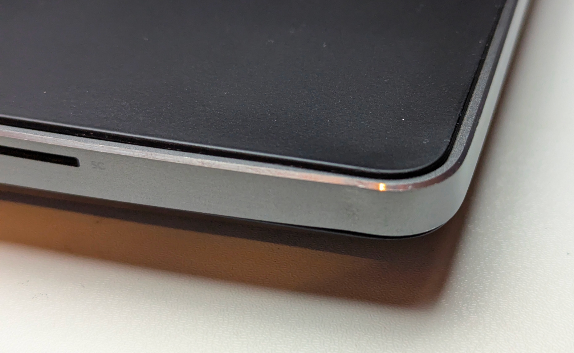 Autrement il est dans un bon état esthétique, il a reçu un coup qui a un peu déformé le cadre de l'écran/le repose poignets. Point à noter, le port HDMI ne fonctionne pas (adaptateur USB-C -> HDMI fonctionnel)