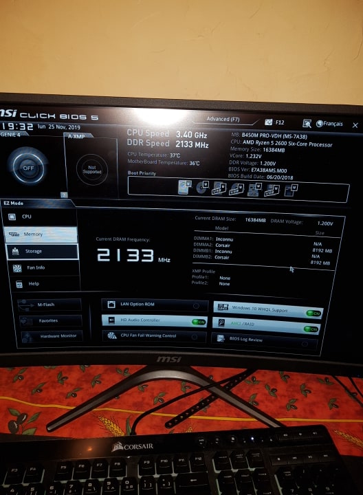 J'ai mis à jour le bios. Y avait profil 1 2800mhz ou profil 2 2933 mhz du coup j'ai mis le profil 2. L'autre option j'ai laissé en auto.