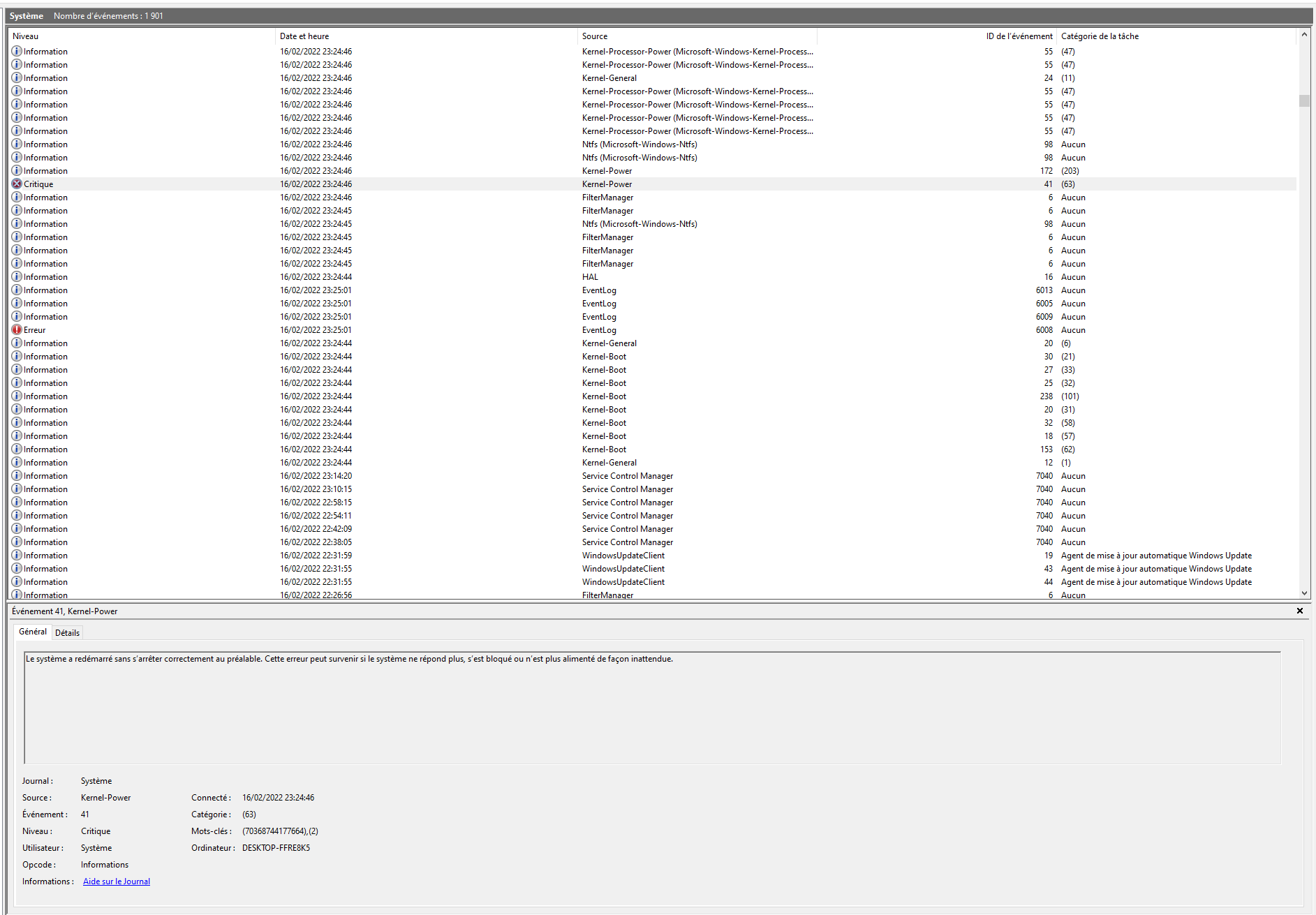 Coupure du pc => Kernel Power 41 - Matériels & problèmes divers - Hardware