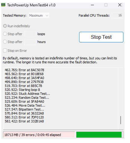 | naphh a écrit : bha, en bas "39 errors" donc oui teste les RAM 1 par 1? |