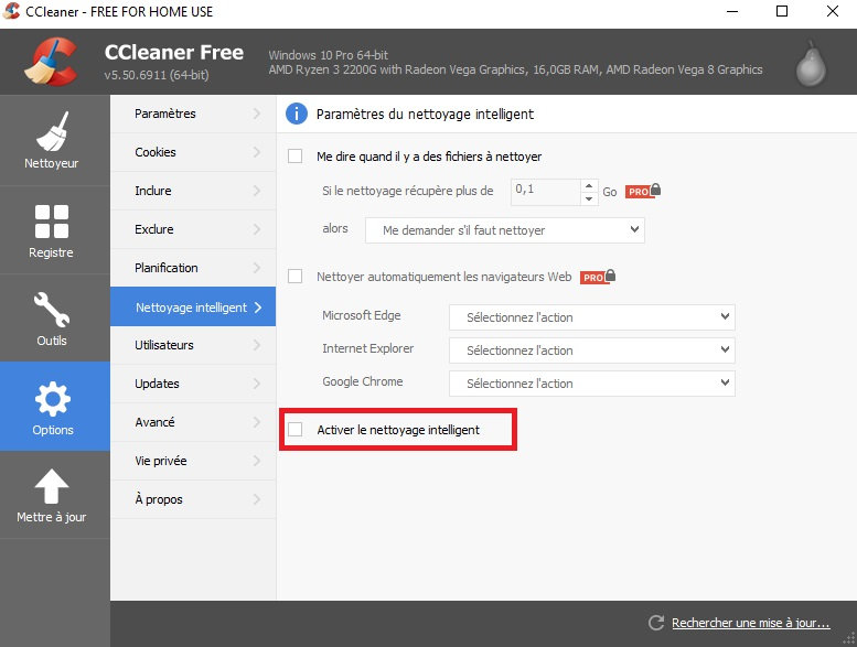 Le nettoyage intelligent ne joue pas sur la vitesse globale non plus.