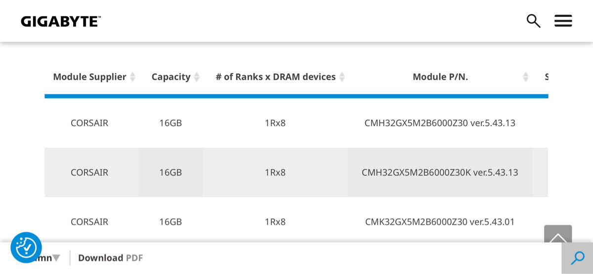 En fouillant sur le site Gigabyte, je me rends compte que ma RAM n’est pas supporté par la CM…