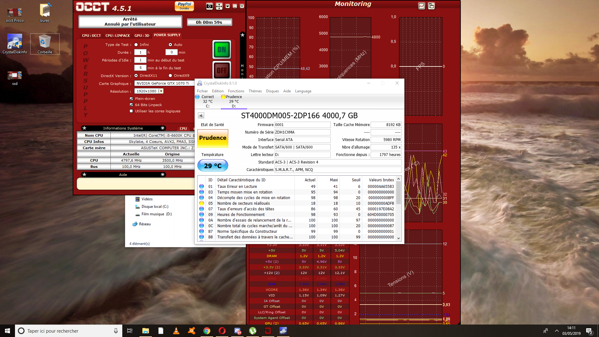 J'ai débranché mon HDD et je l'ai mis de cotés pour le moment donc. Je vais faire le OCCT powersuplly je re tout