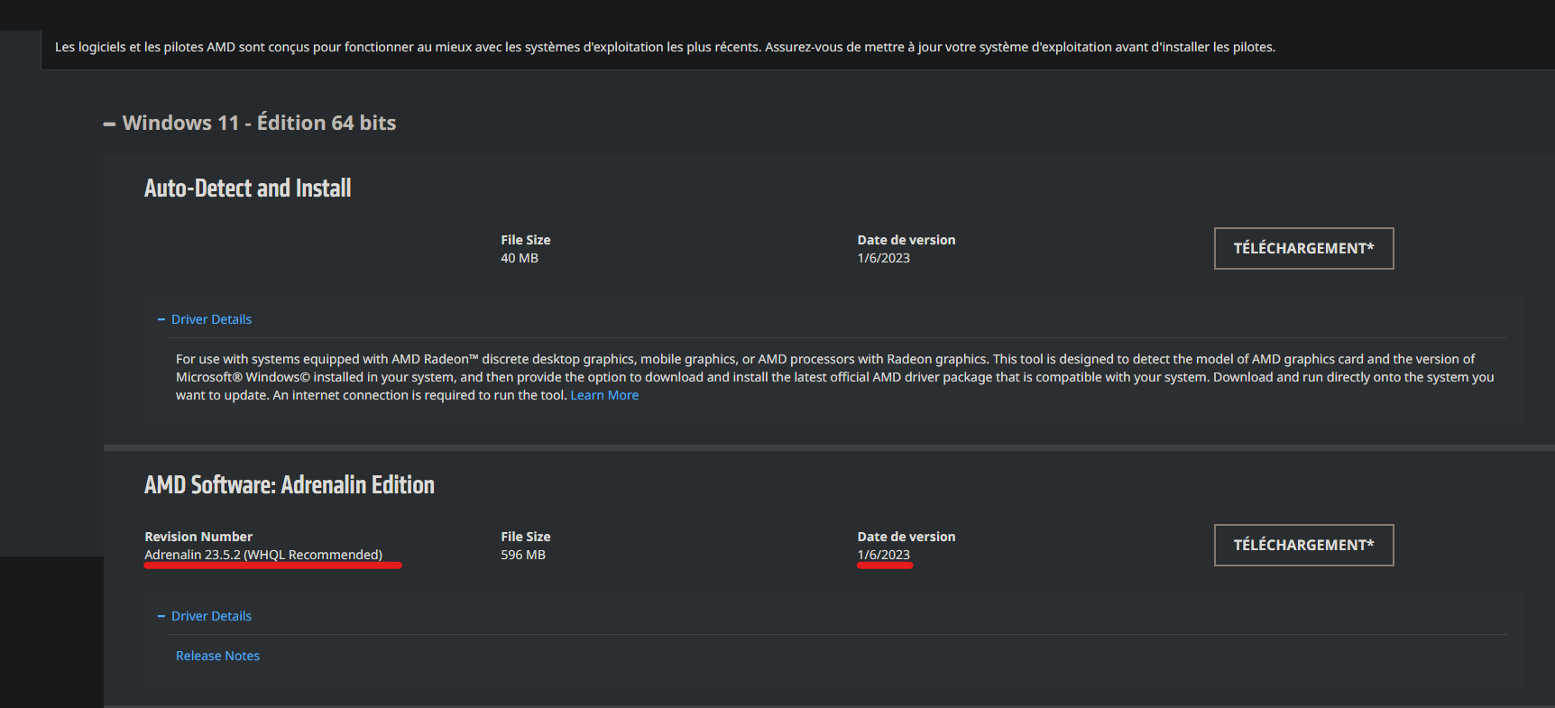 j'ai régulièrement fait les mises à jour de mon matériel et également du logiciel " AMD : Adrenalin " et au jour d'aujourd'hui, la version est à jour depuis le 23 mai 2023.