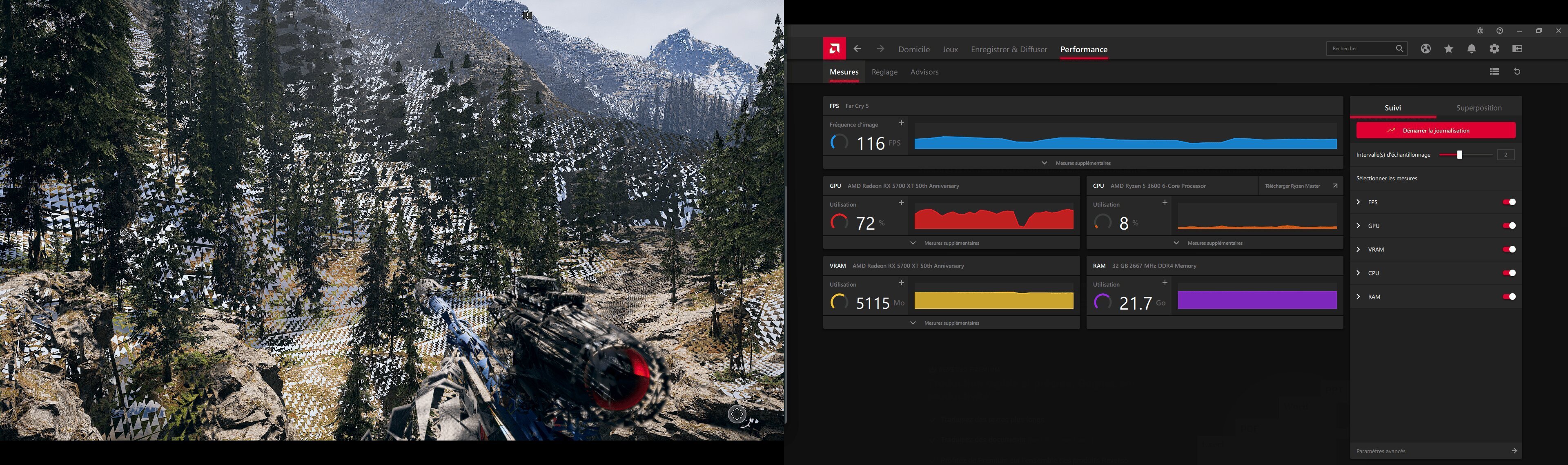 Mais voilà ce soir, j'ai lancé 1 / 2 jeux et j'ai de nouveaux soucis autres que les greens screen, j'ai des artefacts sous forme de " flash " de couleurs différentes et avant d'écrire sur le Forum, j'étais sur FC5 (que je fais aisément tourner) et là j'ai eu de nouveaux soucis graphique ( Photo 1 Le jeu / photo 2 Les perfs in game ) (à savoir que Fc 5 avait déjà de temps en temps des greens screen ou crash mais pas de souci graphique comme depuis ce soir)