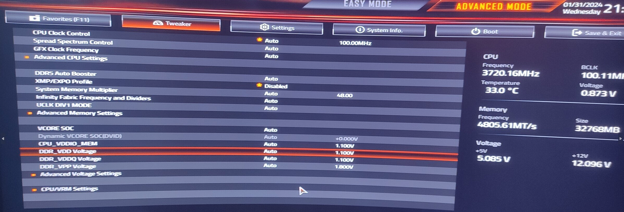 Essayes en mettant 1.4volt sur le VDD Voltage et le VDDQ Voltage.