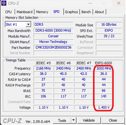 tu prends les infos qu'il y a sur ta capture CPU-Z dans l'onglet SPD et tu rentres à la main dans le bios tout ce qu'il y a écrit sous la colonne EXPO 6000 (par exemple on voit que le voltage est de 1.40 volt au lieu des 1.10 volt)