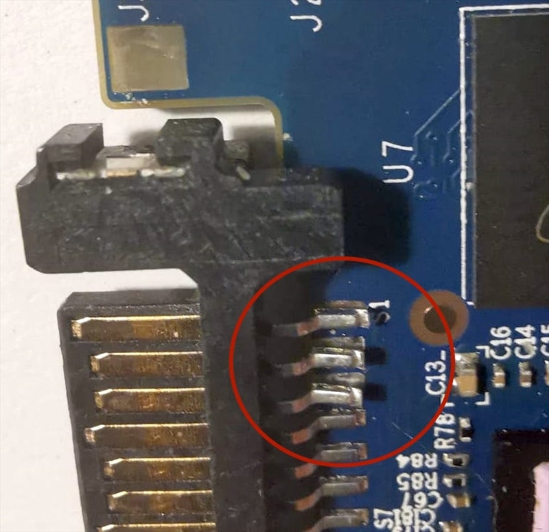Et je viens de m'apercevoir que les soudures ont du sauter là, en vert, connecteur SATA :