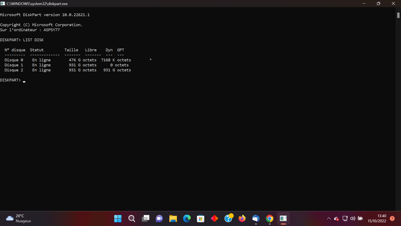 D'où le réel besoin de la capture d'écran du gestionnaire de disques.