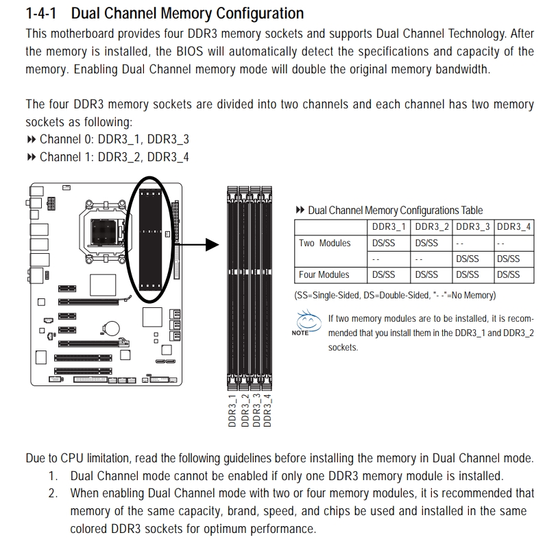 If two memory modules are to be installed, it is recommended that you install them in the DDR3_1 and DDR3_2