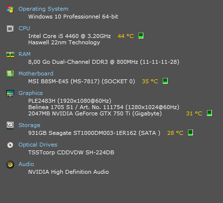 Alors j'ai un petit problème, en effet j'ai acheté un pc fait sur mesure en 2015 pour un peu moins de 800€ possédant une configuration qui à l'époque me satisfaisait quand je jouais encore beaucoup, maintenant je me suis un peu diversifié au niveau de l'utilisation de mon pc et je trouve que pour la partie bureautique, pour faire du montage ou même joué à des jeux les plus simples comme osu! ou LoL je ressent une baisse évidente de performance, j'aimerais donc savoir avec ma configuration jointe ci-dessous, il nécessite que je change la totalité de mes composants ou que j'upgrade seulement quelques pièces