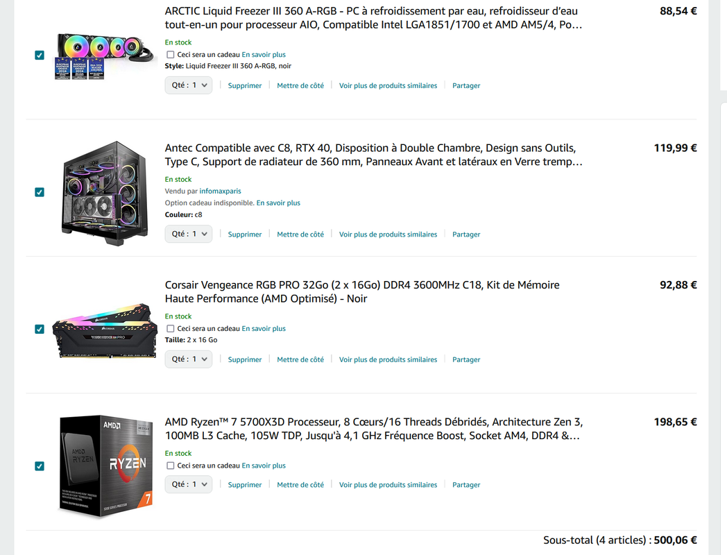 Voici mon Panier Amazon actuel, je ne pensais pas changer de CG car le budget...