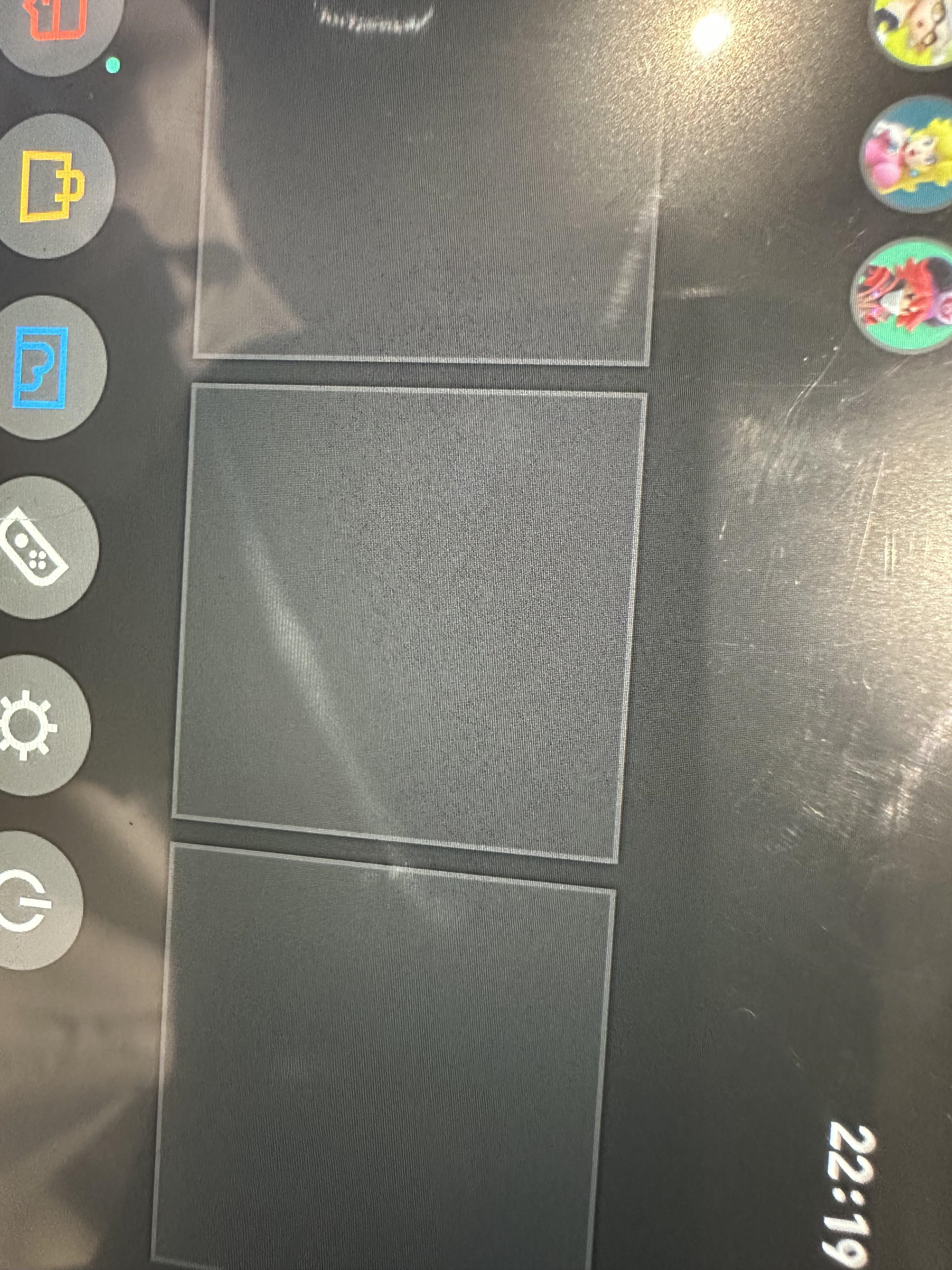 Une trace est visible lorsque l’écran est allumé mais noir, visible sur une des photos, mais invisible en jeu avec des couleurs. Ne porte pas à conséquence sur l’usage.