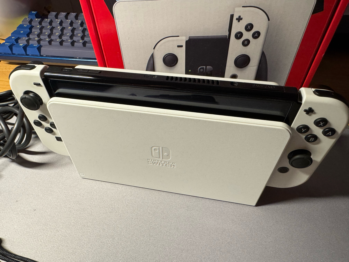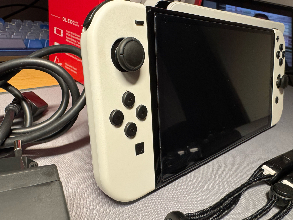 J’ai donc le dock, le support joycon, les dragonnes, les câbles. Plus sous garantie mais fonctionne nickel et état nickel.