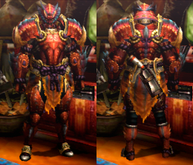 Tetsucabra : bonus de vie, anti-tremblement de terre, 18 de def par pièce d'armure. Classique, facile à crafter, elle offre un bon set de départ. (j'ai viré le malus de sommeil avec une décoration).