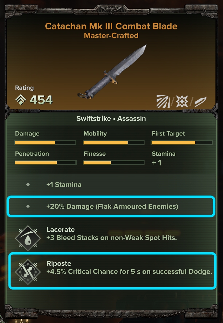 avec 6 que 3. Dommage aussi que le marteau soit si lent et trop interruptible, je reste avec le couteau de combat et je vais essayer de stack les bleed.