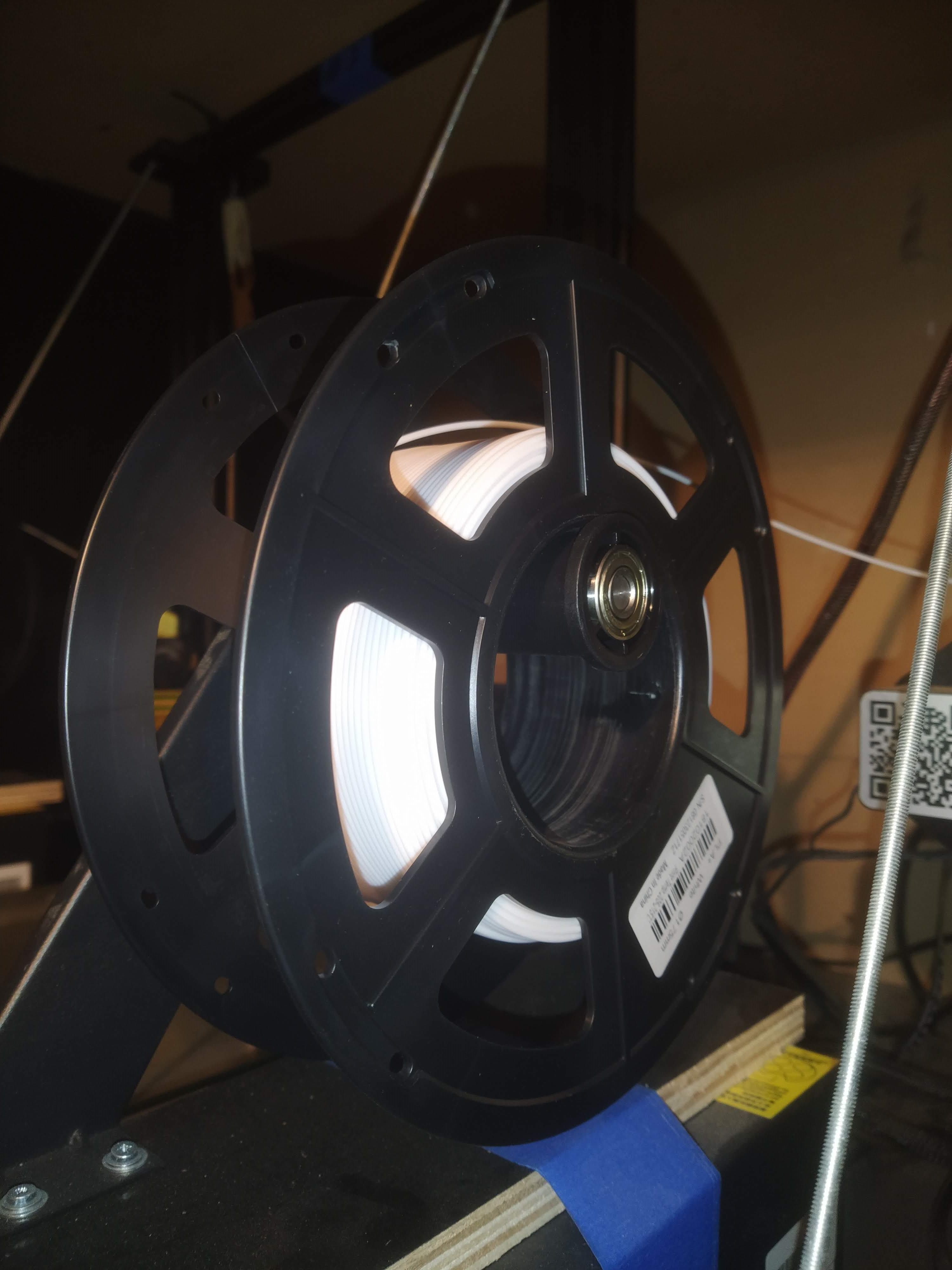 Une bague d'adaptation en 2 parties pour pouvoir "passer le barrage de l'épaulement" de mes supports de bobine sur roulement, sur mes 3 CR-10.