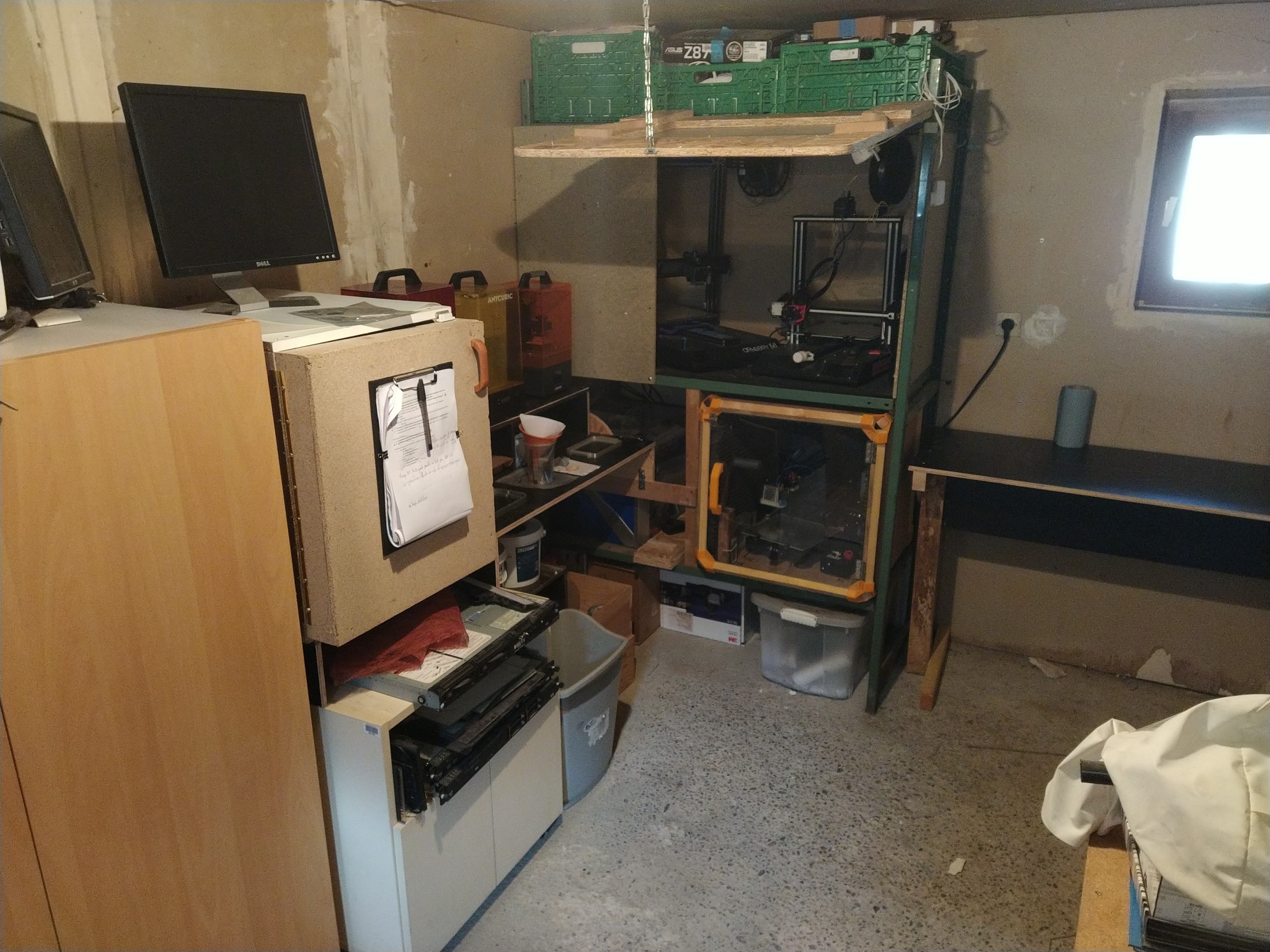 Mais dans la pièce où tout est installé, il fait froid et humide. Aucune des 4 imprimantes n'arrive à quelque chose. Faut dire que mes filaments ouverts ont pris l'humidité. Donc faut corriger cela ! Surtout que je veux me lancer dans l'impression d'un exemplaire de chacun de mes design (au moins les 10 plus téléchargés pour commencer).